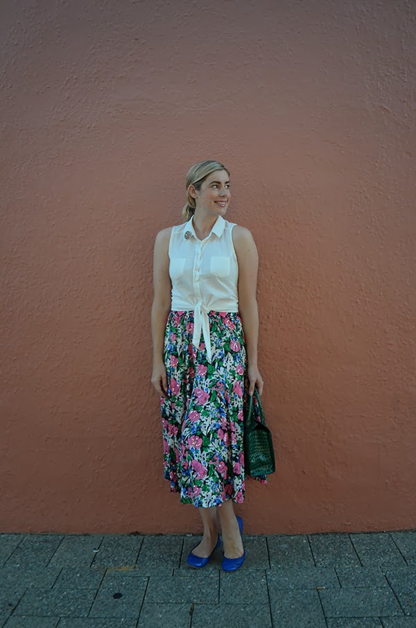 My skirt is an old Sportscraft one that I op shopped few seasons ago for $5, I hemmed the lining so you could see more of the lace pattern. I love this skirt but don't tend to wear it that much, it's very dramatic and I don't have many occasions that call for a dramatic skirt. I picked up the lace shirt at an op shop at the beginning of winter, I haven't worn it once, so I think it will be going in to the pile of things destined for my next clothes swap.